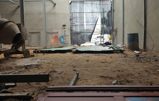- Hiện trạng nhà xưởng ban đầu sử dụng cửa khung sắt bắn thêm một lớp tole lên dùng tạm để che chắn.